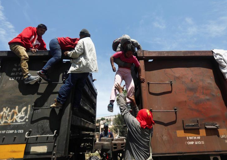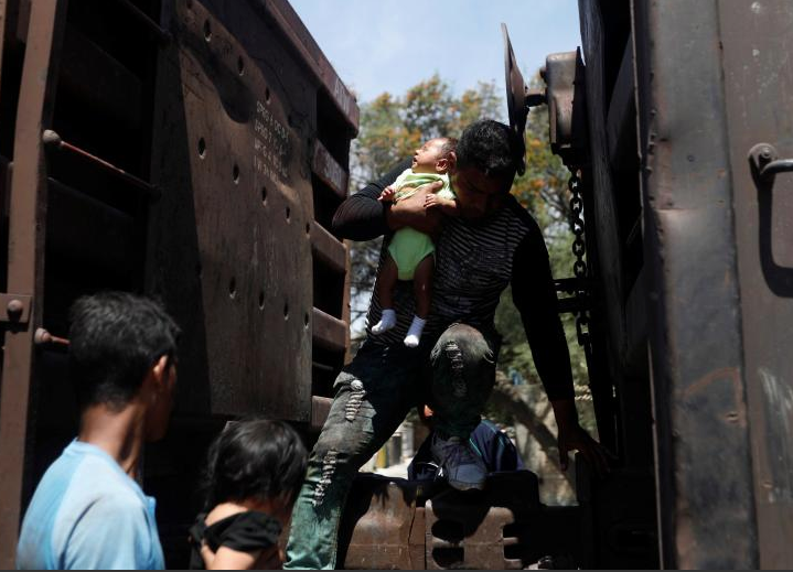 Although the Mexican government made it legal for immigrants to transit Mexico to the US border, the drug war intersects with immigration, making immigrants easy prey to drug gangs & to paramilitary operatives associated with the Mexican army. Those traveling on la bestia are subject to kidnapping, rape, assault, robbery, & there have been some instances of mass murder, dismemberment, & mass graves. While the Mexican government functions as a southern flank of US immigration policy in its treatment of Central American immigrants, all along the train route, Mexican working people have asylums & shelters where immigrants can rest, get medical care, eat meals, get some protection. In the eastern state of Veracruz, local residents rush to every passing train to pass bags of food to immigrants.