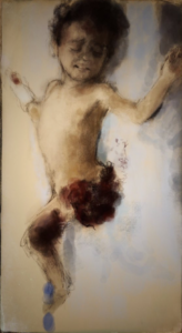 This sketch by artist Marc Nelson is a tribute to five-year-old Riham al-Abdullah who died last month trying to save her baby sister after a Syrian or Russian airstrike on their residence in Idlib province. She died along with her mother & three-year-old sister. May they Rest In Peace.