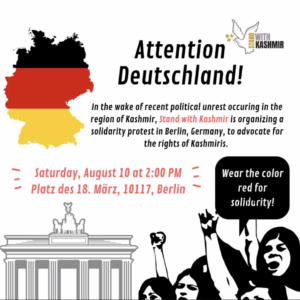 Berlin will #standwithKashmir this Saturday, August 10th: