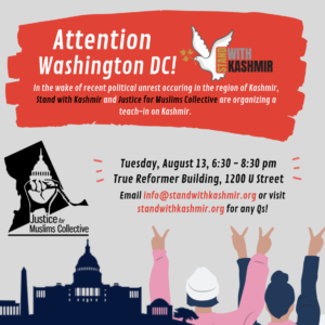 Teach-in on Kashmir in DC next Tuesday, August 13th: