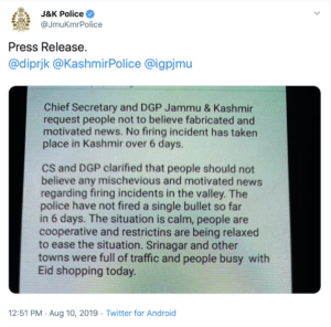 This article which reports India’s defense of the telecommunications blockade in Kashmir, including the use of phones & internet, has to be read to be believed. ‘Social media had become tools to spread fake news, propaganda, instigate violence & provoke insurgency.’ Anybody ever see a Kashmiri do any of that on FB or Twitter? Did Kashmiris need fake news to protest colonialism & occupation long before the advent of social media? India really has to hire better propagandists since this stuff is pathetic.