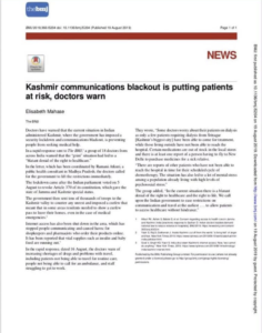 “After The Lancet now The British Medical Journal (BMJ) weighs in on the health crisis in Kashmir. The security lockdown & communications blackout from last 18 days, is preventing people from seeking medical help-a blatant denial of the right to healthcare.