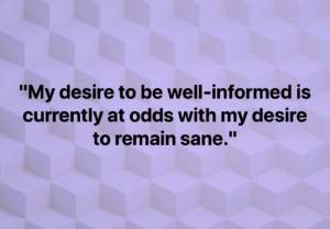 It’s okay to feel overwhelmed sometimes. Human beings were made to love one another, not spend our lives fighting against war & genocide. When we have to, we take the time to renew our psychic energy & we don’t allow any sense of guilt about that. If we don’t take the time, we get sick. Commitment requires inspiration & most of us find it in the kids, in wanting all of them to have a world worthy of them. Take that advice from an old lady who knows the score when it comes to getting overwhelmed sometimes.