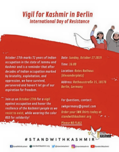 Berlin, Germany #StandWithKashmir vigil, October 27th, 2019.