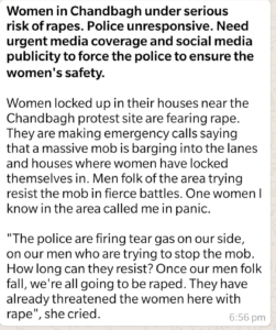 Women & children were directly targeted in the Gujarat pogroms against Muslims, making this call for help from women in Chandbagh a very serious matter.