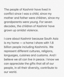 Pakistani activist Malala Yousafzai tweeted this statement in support of Kashmiris & was trolled & insulted by legions of Hindutva nationalists. In 2017, she also spoke loudly in defense of the Rohingya against genocide.
