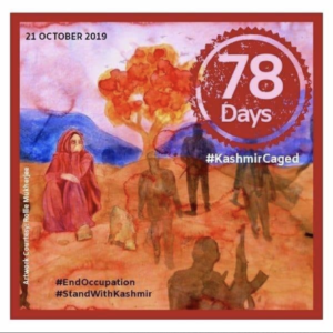 News October 30, 2019 Solidarity ’78 days, Kashmir Caged’: a protest against the occupation & tribute to azadi by Rollie Mukherjee.