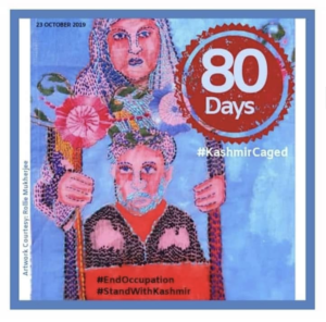 News October 30, 2019 Solidarity “80 days of quiet, disquiet & attempted erasure.” –Farah Bashir “80 days: Kashmir Caged” artwork by Rollie Mukherjee