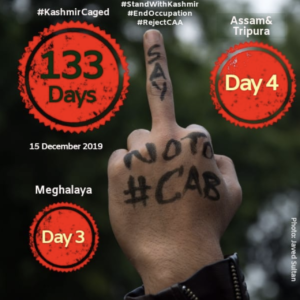 133 days of Kashmir caged: the poster directly links the struggle against occupation of Kashmir with the struggle in India against the Citizenship Act which legalizes the marginalization & persecution of Muslims.