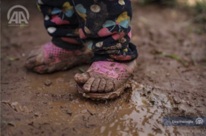 A child refugee from Syrian & Russian bombing in Idlib province & the adjacent regions. Such are the conditions in IDP camps which are also being bombed by Syrian & Russian war planes.