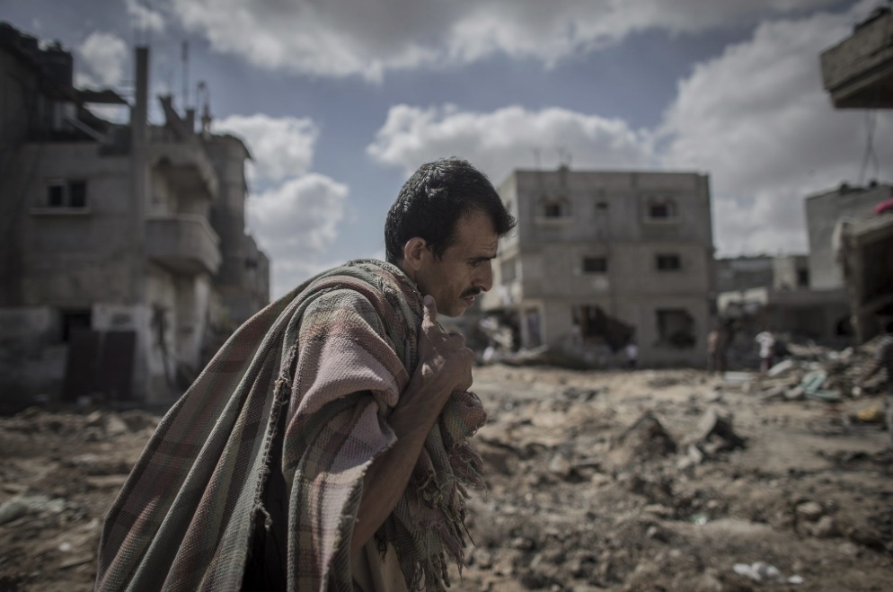 This forlorn man is carrying the few belongings he salvaged from his bombed out house in the village of Khuzaa in central Gaza. He really has no place to go & certainly no place to hide from Israeli bombers & tanks. He’s got no toothbrush, no soap, no clean underwear, no clean shirt & all the comforts & accoutrements of his life are buried in rubble.