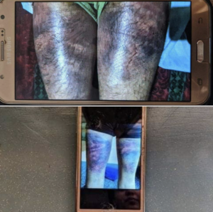 These photos are from a Washington Post article today titled “The night the soldiers came: Allegations of abuse surface in Kashmir”. They’re phone shots from August 7th of 24-year-old Muzaffar Nabi, a carpenter who was given electric shocks & beaten by Indian soldiers with sticks, rods, & cables. Nabi was bedridden for a week, not only with these abrasions but with episodes of vomiting & loss of consciousness. Afterwards, he needed help to walk or go to the toilet. The ordeal was so hellish that Nabi said, “If suicide was allowed in Islam, I would have done it.” That’s the ‘normalcy’ of how the Indian Army tries to ‘win the hearts & minds’ of the Kashmiri people.
