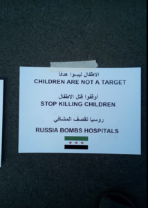 Stop Syrian & Russian bombing of markets, schools, hospitals, mosques. Stop killing Syrian children.