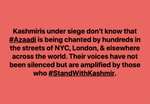 Our commitment is to remain steadfast & continue to organize a #StandWithKashmir political response demanding India immediately & unconditionally withdraw all its troops & immediately release all Kashmiri political prisoners.